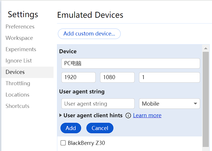 在选择设备下拉栏中,点击最后一个选项 Edit