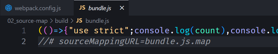 //# sourceMappingURL=common.bundle.js.map执行 npm run build 打包的时候,就会生成一个 bundle.js 文件和 bundle.js.map,那么 bundle.js 如何关联 bundle.js.map 呢?