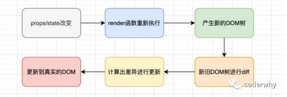 React 在 props 或 state 发生改变时,会调用 React 的 render 方法,会创建一颗不同的树。