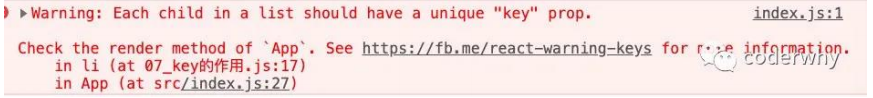 我们在前面遍历列表时,总是会提示一个警告,让我们加入一个 key 属性: