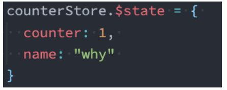 您可以通过将其 $state 属性设置为新对象来替换 Store 的整个状态: