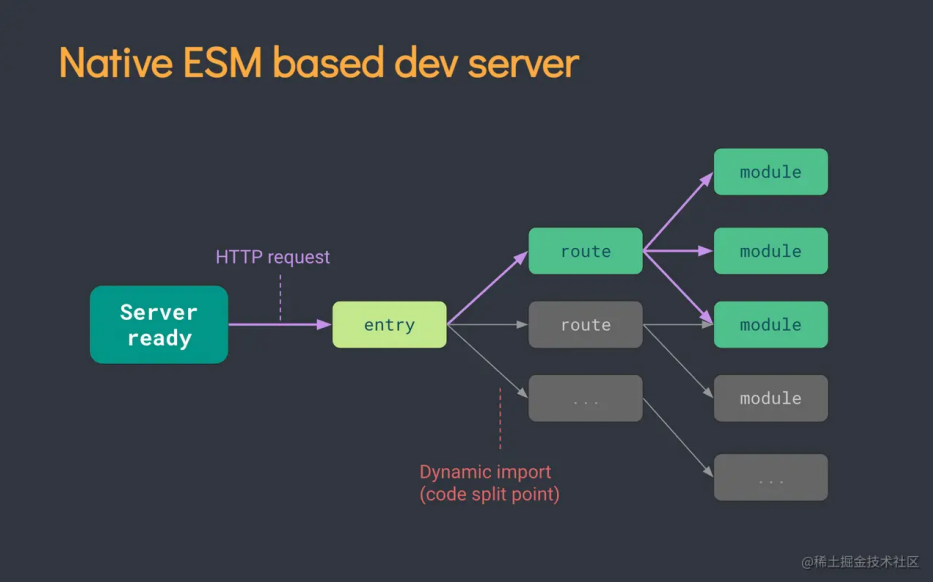 大家都知道, Vite 是一个提倡 no-bundle 的构建工具,相比于传统的 Webpack,能做到开发时的模块按需编译,而不用先打包完再加载。这一点我们在 快速上手 这一节已经具体地分析过了。
